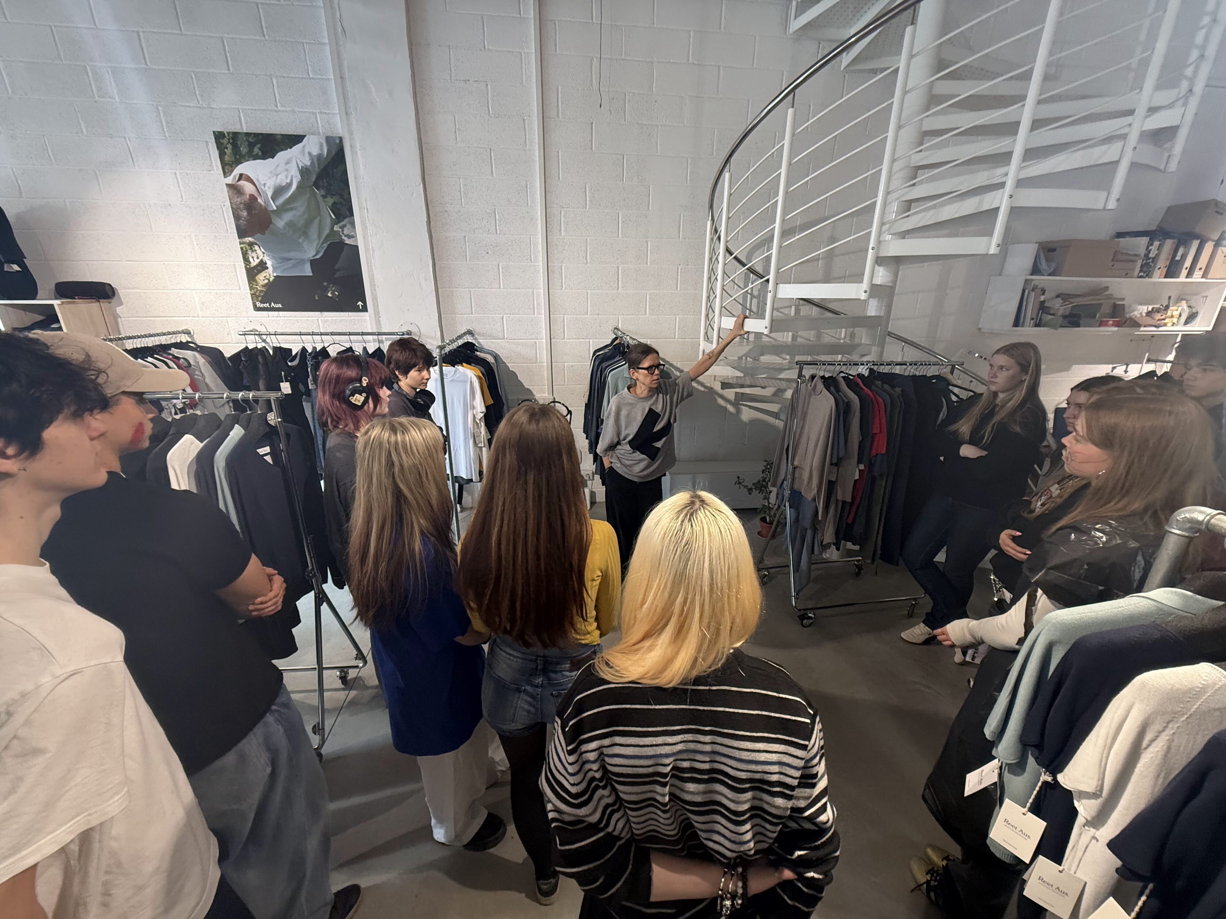 7. oktoobril käisid kümnenda klassi kuju ja disaini suuna õpilased Reet Ausi stuudios, tutvumas nii tema enda kui ka tema loomingu ajalooga. Seal rääkis disainer ja visionäär lähemalt miks, kuidas ja millega alustas ta enda recycling-projektiga. Saime lähemalt tutvuda iga rõivaeseme materjaliga ning kuidas iga tektstiil valminud on. Hiljem saime isiklikult küsida küsimusi ja arutleda ta ettevõtte loome protsessi, languste ja ka meeskonnatöö üle.